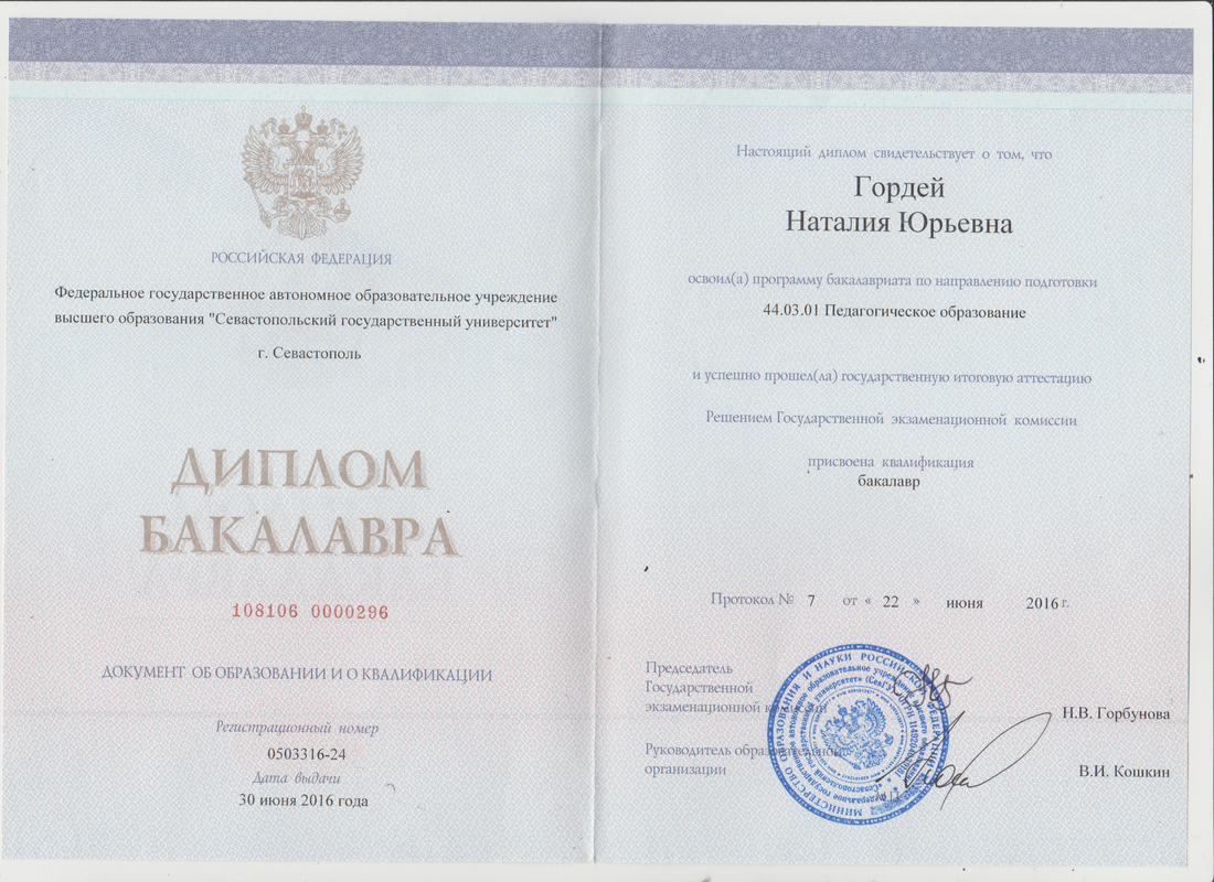 Присвоена квалификация: бакалавр в 2016 году