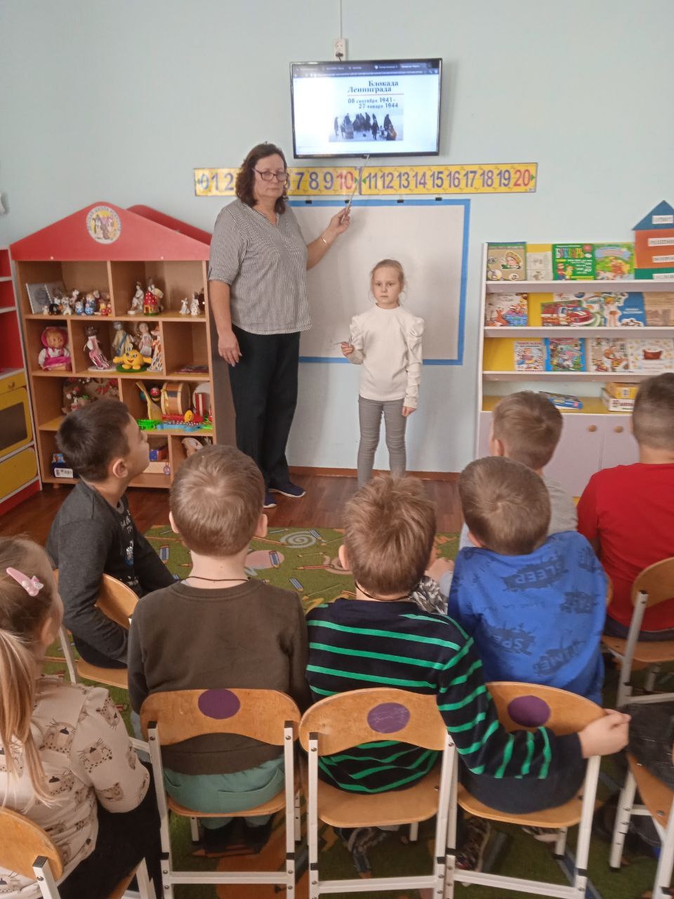 Дети просмотрели фотоматериалы будней блокадного Ленинграда, узнали о трагических событиях того времени, как тяжело доставался кусок хлеба людям на фронте, в глубоком тылу, в блокадном Ленинграде. Дети не остались равнодушными к увиденному, удивлялись героизму людей, их вере в Победу.